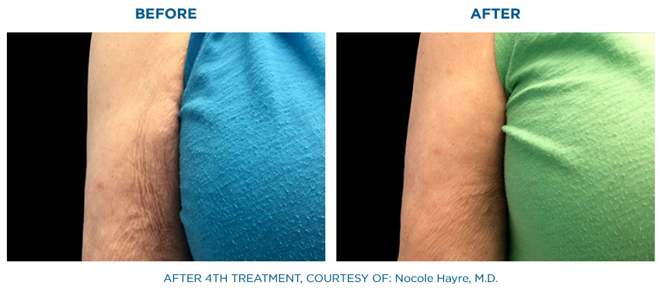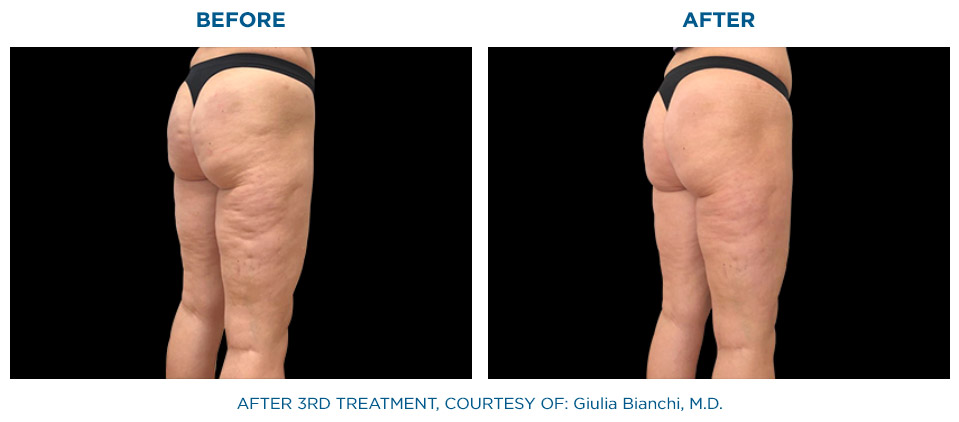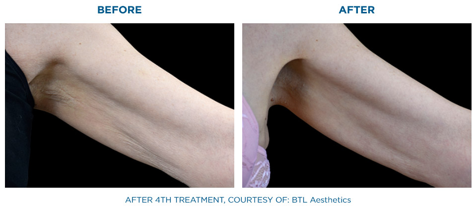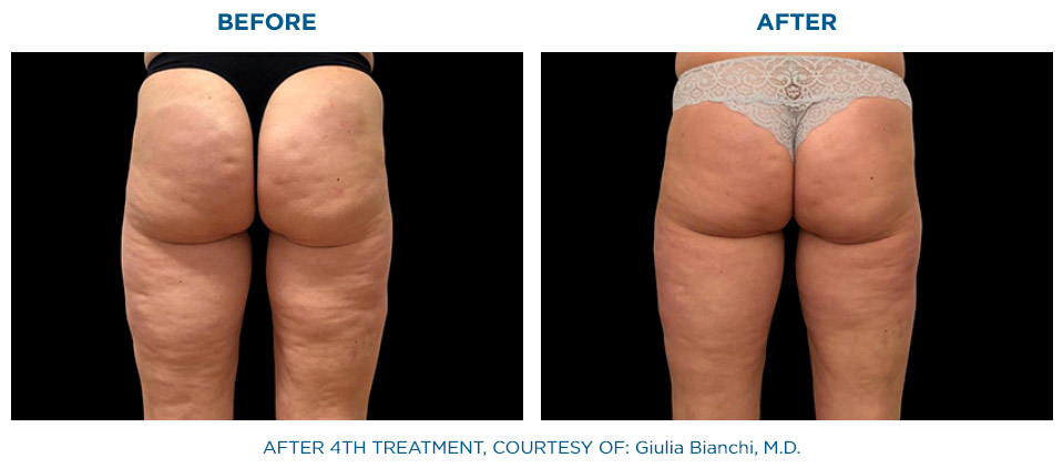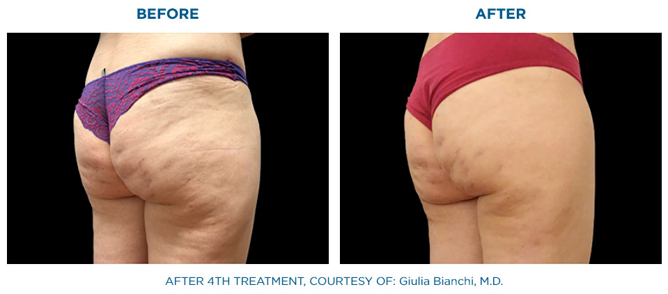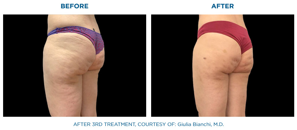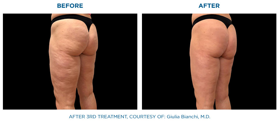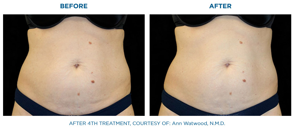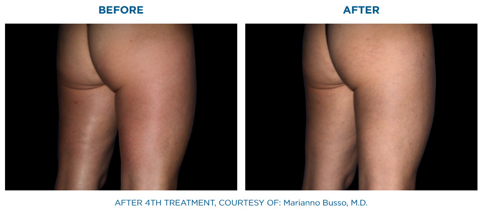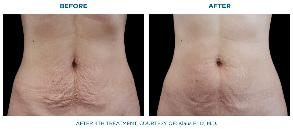 Die gleichzeitige Anwendung von Radiofrequenz und gezielter Stoßwelle, hat eine signifikant höhere Wirkung auf das Bindegewebe als die nacheinander folgende Anwendung dieser beiden Behandlungsformen.