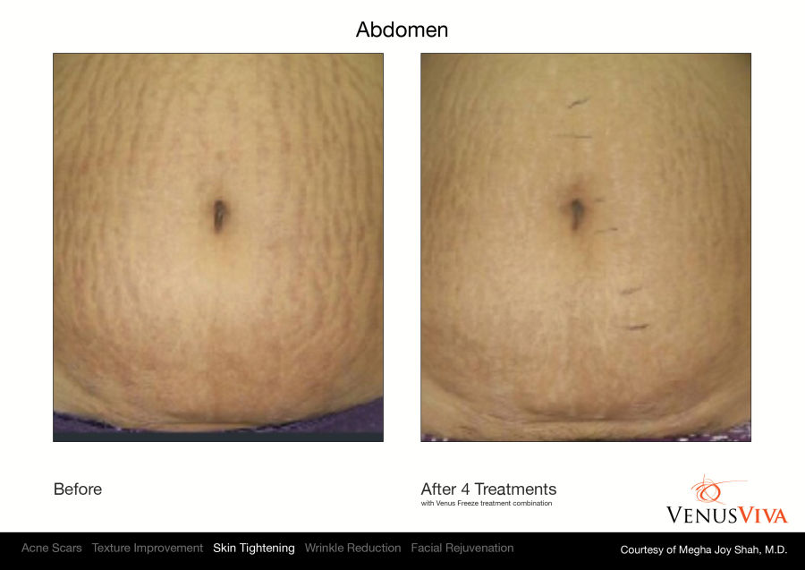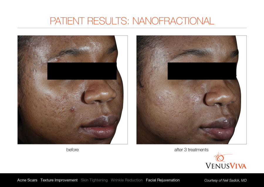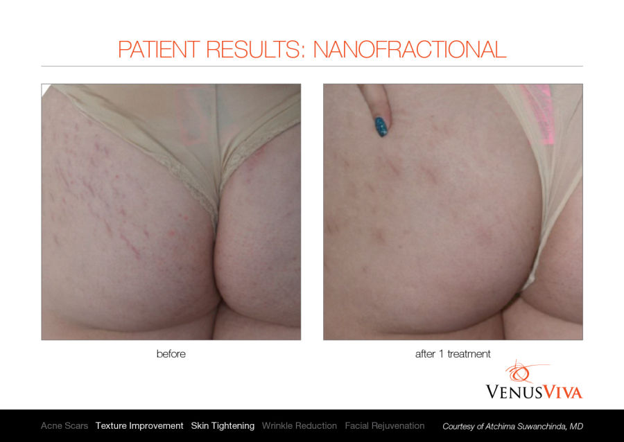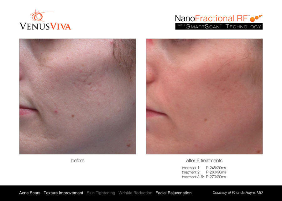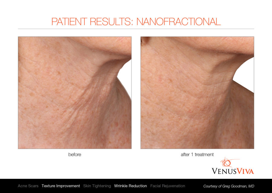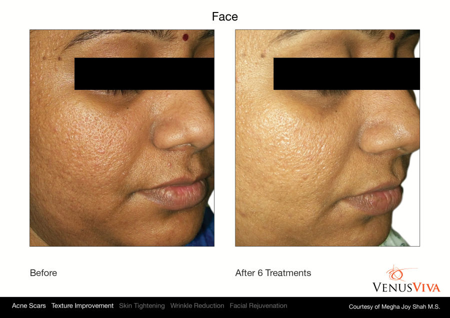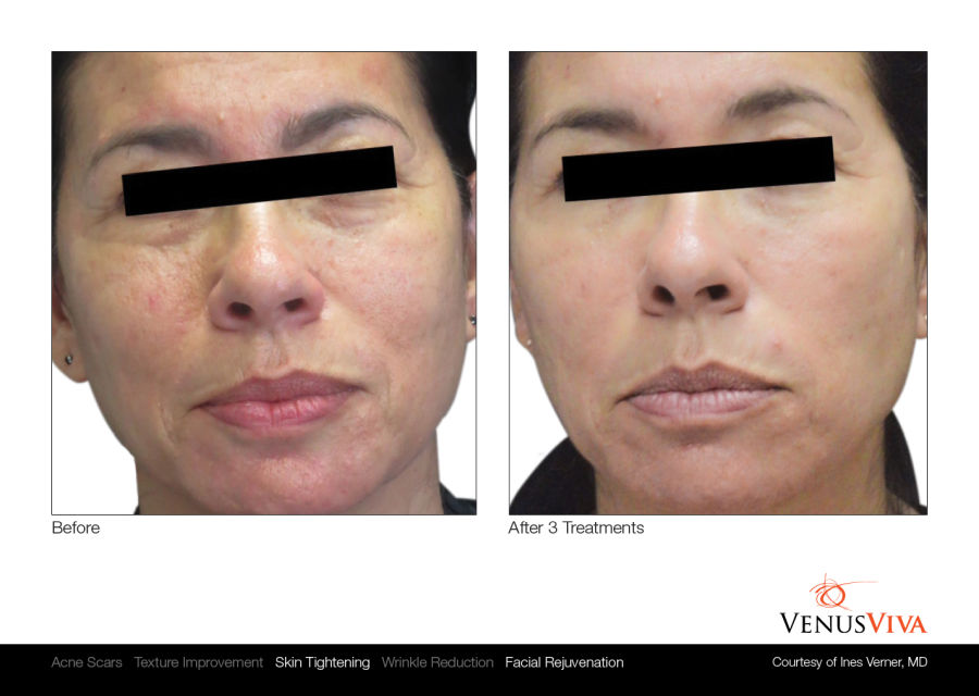Venus Viva™ ist sicher für alle Hauttypen und wird betrieben durch die revolutionäre NanoFractional Radio Frequency (RF) und die SmartScan-Technologie, welche durch ein gezieltes Erwärmungsverfahren der Haut herausragende Resultate liefern und minimale Unannehmlichkeiten für erhöhten Patientenkomfort bieten. Durch die Verwendung von NanoFractional RF dringt Energie durch die Epidermis bis zur Dermis. Dabei bildet sich Wärme, wobei neues Kollagen aufgebaut und die Fibroblasten stimuliert werden. Dies alles führt zu einer Umgestaltung des Gewebes.